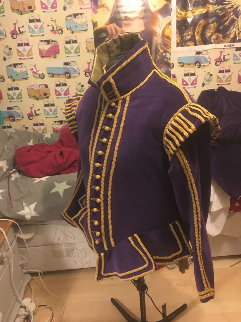 If you are a nerd of historical clothing and accuracy then I highly recommend recreating something from Patterns of Fashion. From the drawing up of the patterns, creating toiles and finishing the suit it took about 5 months. Regarding the fabrics I tried to be as accurate as I could and used purple cotton velvet as the closest I could find to the original was about £125 a meter. Due to creating this suit it also started me on my path to learning and selling historical buttons and learning the art of Passementerie.